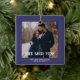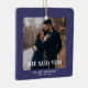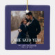 Coastal Blue First Christmas Engaged Custom Photo Ceramic Ornament