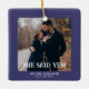 First Christmas Engaged is a Christmas Tree Decoration with your newly engaged photo - Celebrate your First Christmas Engaged with this Modern Traditional style Custom Photo Ornament. This bold navy blue coastal engagement announcement is the perfect gift for the future bride and groom's parents engagement gift. Adding a favourite couple photo, your initials, the year and text to this elegant design for a festive keepsake to your Christmas tree. It's easy to personalise to be uniquely yours.