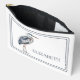 This beautiful personalized cosmetic accessory pouch features a coastal blue heron bird in watercolor shades of blue and gray on a white background with matching blue border. Personalize with your choice of name or special text. Great for gift bags and party favors.