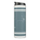 Coastal Blue Ivory Floral Line Art Striped Thermal Tumbler