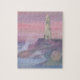 Jigsaw Puzzle with Coastal Bluff Lighthouse With Pink Sky watercolor painting artwork design illustration by TheFabricSeal print on demand shop at Zazzle.com #ZazzleMade https://www.zazzle.com/store/thefabricseal