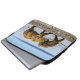 The sleeve is made of nice feeling material and seems very durable. I'm not sure how easy it'll be to clean, but the construction seems sound and the fabric is quick thick. I also like the double zipper. The printing is lovely and appears durable. The white on black contrast is nice, and the design very elegant.
