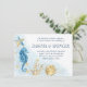 Romantic hand-painted watercolor blue and gold summer beach wedding collection. The design features seashells, starfish, and coral reef in complimenting shades of blue, gold, and off white with a splash of blue for a water effect. Your event details in navy blue modern lettering are framed by the nautical watercolor garland border of elegant sea coral, shells and starfish.