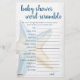 Unscramble the Baby Words! (Answer Key Below) Whimsical under the sea keepsake baby shower or gender reveal party game includes a casual hand-lettered script typography overlay. The collection features hand-painted watercolor seashells, starfish, a seahorse, and coral reef in complimenting shades. ANSWER KEY: Shampoo, Baby Gate, Blanket, One-sie, Diaper Bag, Stroller, Baby Monitor, Lullaby, Pacifier, Bottle For other colours or matching products, please visit the JustFharryn Zazzle store, or contact the designer, c/o Fharryn@yahoo.com All rights reserved. #zazzlemade