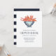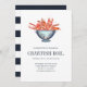 Invite your family and friends with our elegant coastal chic Seafood or CRAWFISH Party Barbecue Invitation in white and navy blue palette.