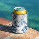 coastal chic indigo blue ocean watercolor seashell can cooler
