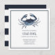 A chic summer party invitation, perfect for birthdays, bbqs or seafood related party! The design features a blue watercolor crab with a blue striped back sourroned by an elegant navy blue frame.
