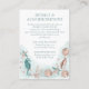 Elegant teal and rose gold hand-painted nautical watercolor "under the sea" wedding collection. The design features seashells, starfish, a seahorse, and coral reef in complimenting shades of deep green and coral with a splash of mint green for a water effect. The details in dark green modern lettering are framed by the nautical watercolor garland border of coral, shells and starfish.