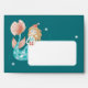 This Christmas envelope design features a magical mermaid and a blank address label on the front, an editable return address label on the back, and a coastal Christmas ornaments pattern on the lining. Original artwork by Marketa Stengl.