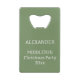 This fun coastal holiday inspired Christmas bottle opener features palm trees decorated with ornaments and a hammock. Personalize the with your choice of name and special text. Great for personalized holiday party favors and gift bags.