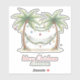 This fun coastal holiday inspired Christmas party vinyl sticker features palm trees decorated with ornaments and a hammock. Personalize with your choice of special text. Great for personalized holiday party decorations and party favor treat bags.