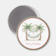This cute coastal holiday inspired Christmas magnet features palm trees decorated with ornaments and a hammock.