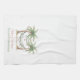 This fun coastal holiday inspired Christmas party kitchen dish towel features palm trees decorated with ornaments and a hammock. Personalize with your choice of special text. Great for personalized holiday party decorations and party favors.