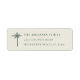 Elegant coastal return address labels feature a stately coconut palm tree in soft dusty dark green on a warm cream ivory background. Personalise with your name and address in classic block lettering.