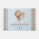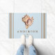 Elegant conch shell illustration in the centre. The background has a soft blue colour and personalised family name text in brown. This doormat is elegant, chic, and would make a great impression on your house guests as they are welcomed to your home!