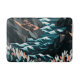 Coastal Energy: This vibrant flat vector illustration captures the dynamic beauty of a rocky beach from an overhead perspective. Dark blue and orange tones bring life to the scene as waves crash onto the shore, creating a captivating contrast. Geometric shapes add depth, while detailed textures on rocks and plants bring a natural feel to this stylized artwork. The minimalistic design emphasizes movement and energy, making it a perfect piece for those looking to add a bold and modern coastal vibe to their collection.