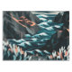 Coastal Energy: This vibrant flat vector illustration captures the dynamic beauty of a rocky beach from an overhead perspective. Dark blue and orange tones bring life to the scene as waves crash onto the shore, creating a captivating contrast. Geometric shapes add depth, while detailed textures on rocks and plants bring a natural feel to this stylized artwork. The minimalistic design emphasizes movement and energy, making it a perfect piece for those looking to add a bold and modern coastal vibe to their collection.