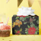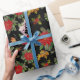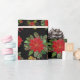 Where the forests meet the sea, coastal pine wrapping paper of poinsettias, acorns, holly, fall leaves and a black background.