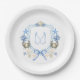 Coastal Grandmillenial Crab Calligraphy Monogram Party Paper Plates. Beautiful blue, white and cream classic colours. Go into EDIT MODE to switch out your custom calligraphy monogram initial. Unhide the one you need. Personalise this design, simply select the "Personalise It" button above!