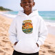 This kitschy "Coastal Lifestyle" retro beach art is pure Florida kid chaos! This surfer boy already knows how to handle an alligator and catch a wave, no surfboard needed. He's a Florida native for sure! The surf beach at sunset scene has bold orange, red and yellow colors, complete with palm trees blowing in the tropical breeze. The cheeky vintage inspired surfing graphic will make you chuckle. This cute hoodie is perfect for beach boys & little surfers. | Pro-Tip: For vibrant colors we recommend vivid printing for most apparel. For white apparel select classic printing.