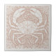 This coastal ceramic tile features a bold crab shell surrounded by an intricate arrangement of swirling waves, coral branches, bubbles, seaweed, and stylized marine details. The design is printed in soft coral pink paired with crisp ivory white, giving it a striking two-tone look inspired by classic block-print and nautical artwork. With its rich pattern and handcrafted feel, this tile works beautifully in beach homes, nautical décor themes, accent walls, backsplashes, and decorative coastal projects. Simply choose your preferred color variation to suit your style. Search ID1208 to see additional colors and design motifs in this series. Note: design may contain generative content