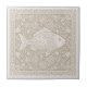 This coastal ceramic tile features a beautifully detailed fish surrounded by an intricate arrangement of swirling waves, coral branches, bubbles, seaweed, and stylized marine details. The design is printed in soft sand paired with crisp ivory white, giving it a striking two-tone look inspired by classic block-print and nautical artwork. With its rich pattern and handcrafted feel, this tile works beautifully in beach homes, nautical décor themes, accent walls, backsplashes, and decorative coastal projects. Simply choose your preferred color variation to suit your style. Search ID1208 to see additional colors and design motifs in this series. Note: design may contain generative content