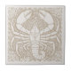This coastal ceramic tile features a beautifully detailed lobster surrounded by an intricate arrangement of swirling waves, coral branches, bubbles, seaweed, and stylized marine details. The design is printed in soft sand paired with crisp ivory white, giving it a striking two-tone look inspired by classic block-print and nautical artwork. With its rich pattern and handcrafted feel, this tile works beautifully in beach homes, nautical décor themes, accent walls, backsplashes, and decorative coastal projects. Simply choose your preferred color variation to suit your style. Search ID1208 to see additional colors and design motifs in this series. Note: design may contain generative content