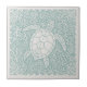 This tile showcases a beautiful detailed turtle encircled by swirling wave forms, teal textures, and tiny bubble motifs. The two-tone teal and ivory palette creates a striking block-print aesthetic that emphasizes the coral’s elegant shape. With its rich pattern and handcrafted feel, this tile works beautifully in beach homes, nautical décor themes, accent walls, backsplashes, and decorative coastal projects. Search ID1208 to see additional colors and design motifs in this series. Note: design may contain generative content