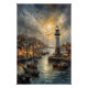Coastal Lighthouse & Seaside Village Sunset Art Poster