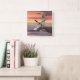 Square Wall Clock casual fun home furnishing decor accessory with Coastal Lighthouse With Pink And Orange Sky watercolor painting artwork design illustration by TheFabricSeal print on demand shop at Zazzle.com #ZazzleMade https://www.zazzle.com/store/thefabricseal If you’re lucky enough to be at the beach, you’re lucky enough. My love of the beach, ocean, outdoors, nature and watercolor painting comes together in the artwork image I enjoyably created. I hope you enjoy it as much as I do. Mixed media, watercolor painting and digital graphic design manipulation processes. Beautiful pink, orange, yellow, gold, golden, tan, sand, brown, grey, black, white, purple, blue and green colour palette scheme. All together in this seaside nature scene of a lighthouse sitting on a cliff side bluff, pounding waves crashing and splashing ashore, soaring seagulls flying overhead, pretty pink and purple sunrise / sunset backdrop in the background.