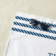 Coastal Lobster Beach House beach towel features a red watercolor Maine lobster with navy blue striped nots at each end. Personalise it with your family name and the date established. Perfect for summer beach homes, waterfront cottages and family vacations.