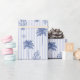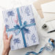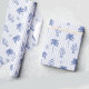 Playful pattern in blue white tones featuring palm tree, lobster on striped background as coastal / beach party / event gift wrap for bachelorette, bridal shower, birthday party, graduation party etc.