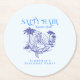 Coastal Mermaid Blue Cowgirl Birthday Party Round Paper Coaster