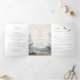 Announce your coastal celebration with this elegant tri-fold wedding invitation, complete with all-in-one details and an RSVP postcard for guests to detach. Adorned with a serene New England beach landscape and hand-drawn foliage in muted colours, this invitation captures the tranquil beauty of the seaside. Personalised with the bride and groom's names and date, along with a timeless anchor design, it's the perfect way to set the tone for your coastal wedding.