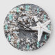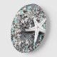 Beautiful print made up of tons of seashell bits and rocks, and featuring a white starfish! Perfect for the beach lover, nautical theme, or a summer pattern. Has a bit of a black and white vibe because of the colours. Change out the numbers to make it your own! Nautical White Starfish Shell Grey Sand Beach Large Clock