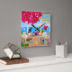 A illustration painting of a summer veranda or lanai. A cat perches and looks out to the water. There are many serene elements including a sailboat, clear blue skies and calm sea. Pretty colour flowers surround the patio. Imagine yourself sitting with a friend sitting on the wickers chairs and enjoying a tropical drink on a beautiful day. This illustration is meant to take your mind to such a place, imagine being near the ocean and relaxing.