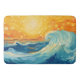 Bath mat featuring a serene coastal oil painting of a glowing sunset and bright blue waves, bringing a relaxing, beach-inspired vibe to your bathroom decor.