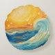 Coastal Oil Painting Sun and Waves Round Cushion