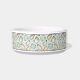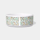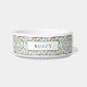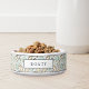 Pamper your seafaring pooch with our personalised dog bowl, featuring a pattern of watercolor oyster and pearl illustrations in light aqua and warm ivory, on a pale aqua background. A thin navy border at the top and bottom adds to the preppy charm of this summery doggie dish. Personalise with your pup's name in classic navy blue lettering.