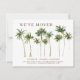 Stylish moving announcement featuring a row of tropical palm trees set on a white background with a coordinating back for an extra special touch.