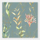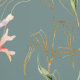 Coastal Pattern, Colourful, MInimal Seaweed Teal Wallpaper