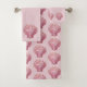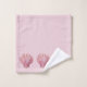 This cute bath towel set features coastal pink scallop seashells on a background of soft pink.