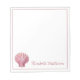 This cute personalised note pad features a coastal pink scallop seashell on a background of solid white. Personalise with your choice of name or special text.