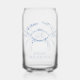 This coastal inspired can glass drinking glass features a classic coastal crab in blue and can be personalised with your choice of special text in matching blue. Fun for personalised party supplies and gift bags.