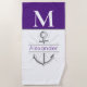 Coastal Purple Anchor Nautical Monogram Name Beach Towel