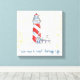 A cute, nautical watercolor design featuring a lighthouse & script text phrase.
