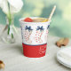 These cute coastal inspired holiday paper party cups feature classic Christmas stockings with red crabs on white and a dark blue bow on top. Personalise with your choice of name or special text.