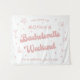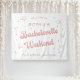 Welcome your bride tribe to a weekend of fun with this customisable pink bachelorette party tapestry. Featuring a stylish design with a personalised name, location, and date, this eye-catching wall hanging will set the perfect celebratory tone for your bachelorette weekend. With its chic colours and playful details like martini glasses and seashells, this tapestry adds a touch of glamour and excitement to any party space. Create a lasting memory with this unique and personalised keepsake.