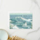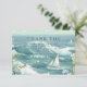 This coastal wedding design features a serene ocean scene with rolling teal waves, a graceful sailboat, and an open sky filled with soft clouds and seabirds. The hand-illustrated watercolor style creates a light, airy atmosphere that feels calm, romantic, and timeless.