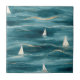 A serene nautical pattern ceramic tile featuring sailboats drifting across layered blue, teal, and sandy waves. This calming coastal design brings a breezy seaside feel, ideal for ocean lovers, beach-house décor fans, sailors, and anyone who enjoys relaxed maritime style. Perfect for summer gifts, coastal celebrations, and nautical-themed events.